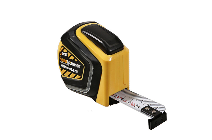 Рулетка 5x27мм, автостоп, двухстор., нейлон, супермощный магнит, Hanskonner