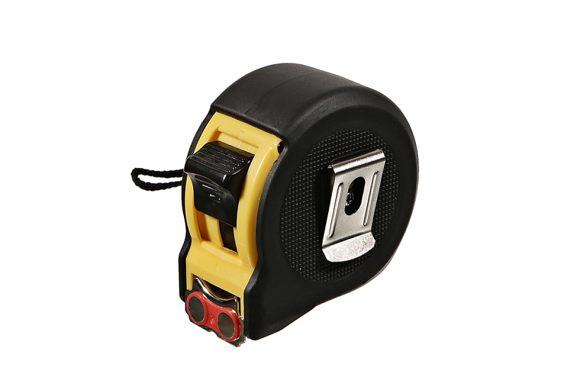 Универсальность использования ленты обеспечивают две опорные точки для измерения: передняя и задняя сторона упорной пластины-зацепа, которые позволяют начать замер от верхних или нижних кромок до проемов и торцов.