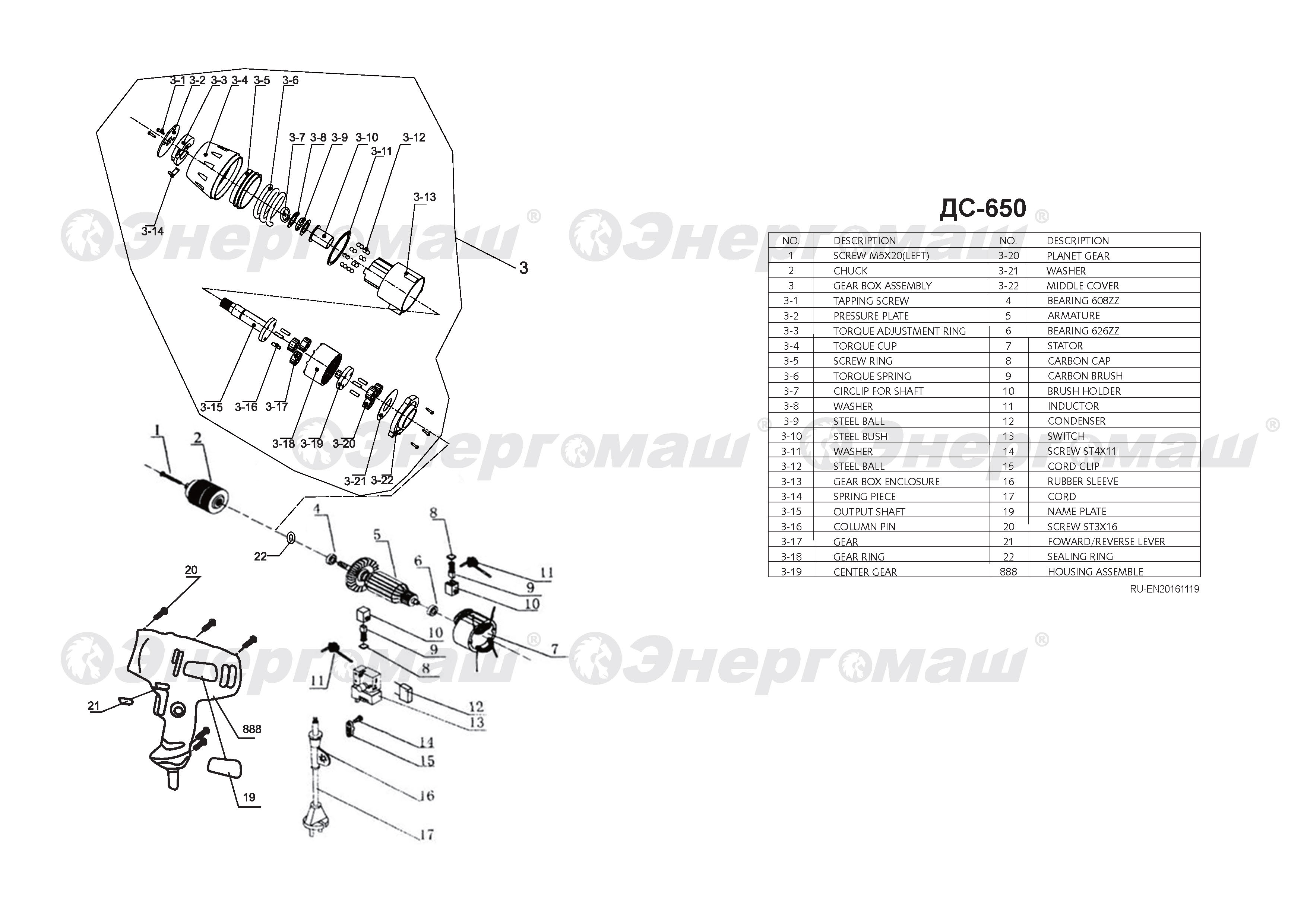 Сетевой шуруповерт Энергомаш ДС-650