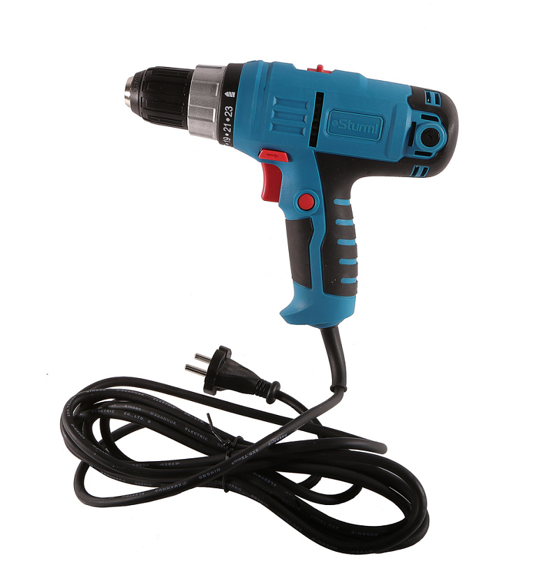 Sturm ID2145P – универсальный двухскоростной сетевой шуруповерт профессиональной серии инструмента Sturm. В сравнении с бытовыми DIY моделями обладает лучшей надежностью и ресурсом. Инструмент оснащен производительным 450 Вт электромотором и мощным планетарным механизмом, который обеспечивает высокие показатели по крутящему моменту (макс. крутящий момент 45 Н м), позволяя эффективное использование при работах с крепежом средней и большой длины. Модель имеет две скорости: режим пониженных оборотов (0 – 400 об / мин) предназначен для работ с крепежом, режим повышенных оборотов (0 – 1600 об / мин) – для сверления отверстий в различных материалах. Предусмотрена муфта регулировки усилия с 23 фиксированными ступенями и возможностью полной блокировки (режим сверления) – с ее помощью пользователь может максимально точно настроить нужный момент затяжки. Важной особенностью шуруповерта является функция блокировки вала шпинделя – благодаря ей достигается быстрота замены оснастки, а также реализуется мягкое докручивание крепежа. Благодаря оптимальным массово-габаритным показателям, выверенной эргономике и проработанной конструкции модель удобна в использовании: нейтральный центр тяжести обеспечивает лучший контроль инструмента, резиновые накладки на корпусе гарантируют надежность хвата, возможность фиксации клавиши пуска способствует комфорту при длительных работах, наличие длинного четырехметрового сетевого кабеля повышает мобильность инструмента, исключая необходимость применения дополнительного удлинителя. Для удобства обслуживания предусмотрен быстрый доступ к щеткам, позволяющий производить их замену без демонтажа элементов корпуса.