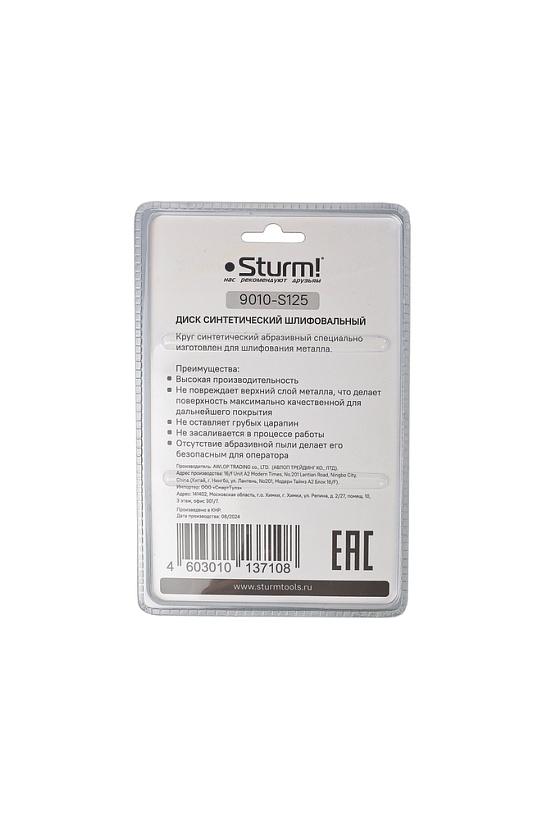 Диск синтетич. Шлифовальный Эксперт по металлу 125 мм, Sturm!