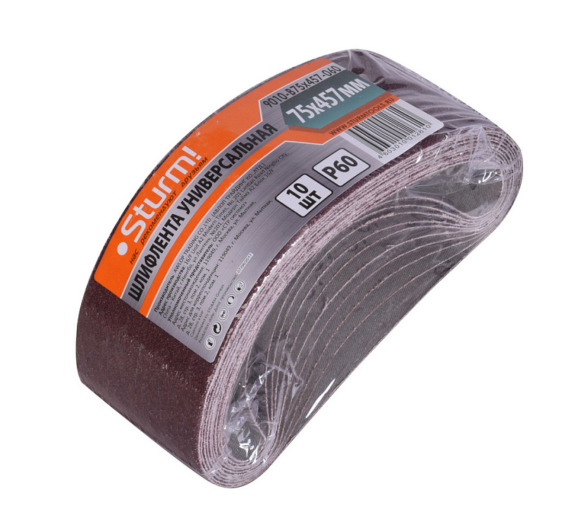 Шлифлента, 75x457мм, Р60, 10 шт, Sturm!
