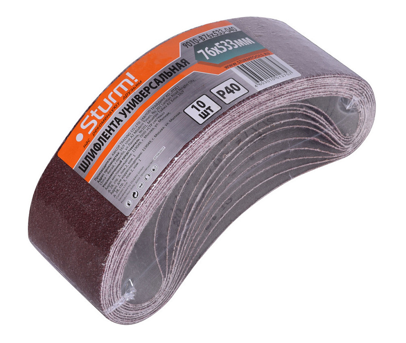 Шлифлента, 76x533мм, Р40, 10 шт, Sturm!