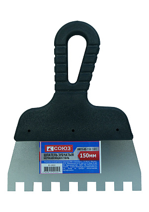 - Шпатель СОЮЗ 8051-45-150-10FC используется для нанесения и равномерного распределения различных густых, клеевых составов, создания фактурной штукатурки.