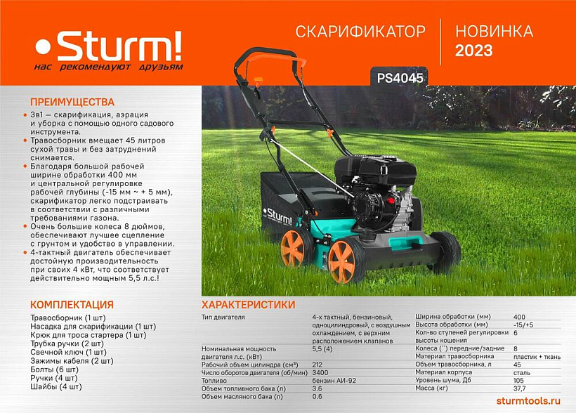 Надежный, и в то же время мощный скарификатор, поможет эффективно подготовить газон к предстоящему сезону и профессионально ухаживать за ним!