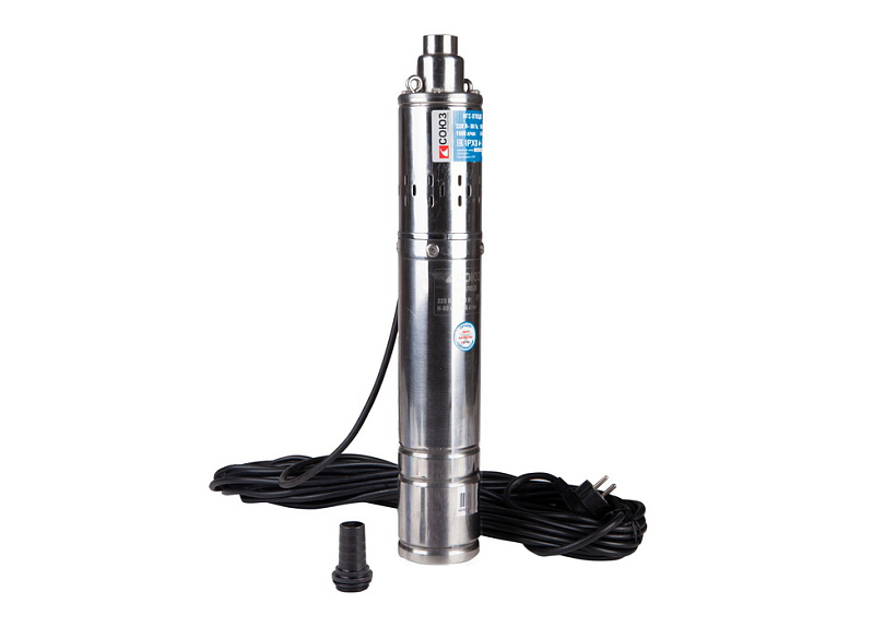 СОЮЗ НГС-9705ДВ – погружной скважинный винтовой насос – предназначен для перекачивания чистой воды без песка или иных примесей из относительно неглубоких, узких скважин. Обладает небольшими габаритными размерами, благодаря чему удобен в транспортировке. Корпус устройства изготовлен из нержавеющей стали и стоек к воздействию агрессивной среды, и механическим повреждениям. Модель оснащена 550 Вт электродвигателем и рабочим элементом в виде винта-шнека – характеризуется высокой производительностью, и способна перекачивать за час до 1500 литров воды, обеспечивая ее подачу на высоту до 90 метров, осуществляя забор с глубины до 30 метров. Максимальная температура перекачиваемой воды не должна превышать 40 °C. Двигатель насоса имеет масляное охлаждение, что способствует его малому износу в процессе эксплуатации. Также, в конструкции СОЮЗ НГС-9705ДВ предусмотрена термозащита – она отключает питание при перегреве и позволяет возобновить работу при остывании устройства до рабочей температуры. Наличие длинного 20-ти метрового кабеля питания дает возможность установить насос на необходимой глубине погружения.