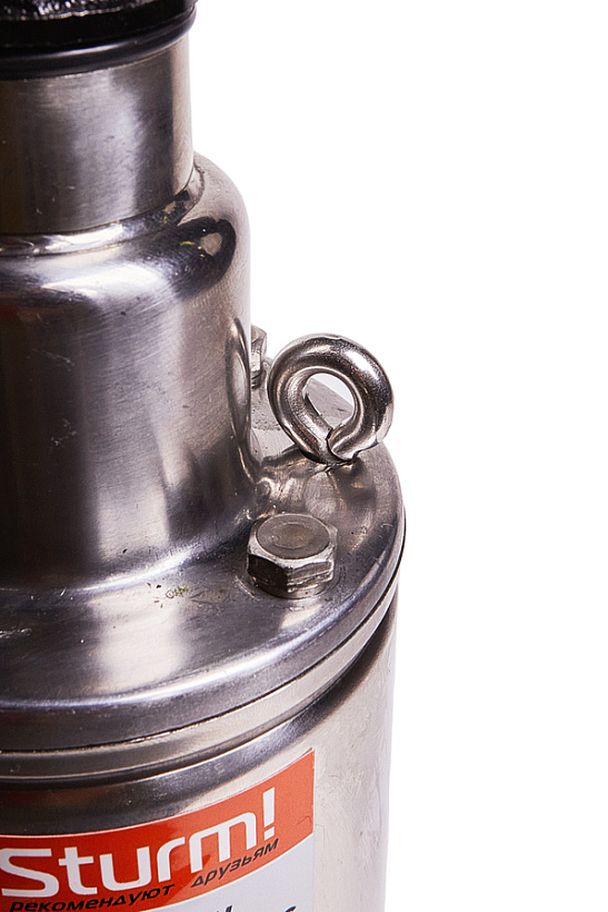 Sturm WP9705DW – погружной скважинный насос – предназначен для перекачивания чистой воды без песка или иных примесей из относительно неглубоких, узких скважин (минимальный диаметр скважины – 95 мм). Обладает небольшими габаритными размерами, благодаря чему удобен в транспортировке. Корпус устройства изготовлен из нержавеющей стали и стоек к воздействию агрессивной среды и механическим повреждениям. Модель оснащена рабочим элементом в виде винта-шнека и характеризуется высокой производительностью – способна перекачивать за час до 1600 литров жидкости и обеспечивать ее подачу на высоту до 95 метров, осуществляя забор с глубины до 30 метров. Максимальная температура перекачиваемой воды не должна превышать 40 °C. Двигатель насоса имеет масляное охлаждение, что способствует его малому износу в процессе эксплуатации. Также, в конструкции Sturm WP9705DW предусмотрена термозащита – она отключает питание при перегреве и позволяет возобновить работу при остывании устройства до рабочей температуры. Наличие длинного 20-ти метрового кабеля питания дает возможность установить насос на необходимой глубине погружения.