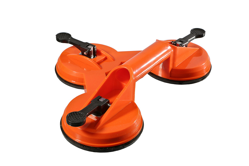 Стеклодомкрат используется для монтажа и транспортировки стекольных изделий, а также любых других грузов, имеющих гладкую и ровную поверхность. Он состоит из корпуса-ручки и из установленной в нём резиновой диафрагмы, работающей по принципу резиновой вакуумной «присоски». Корпус инструмента изготовлен из ударопрочного пластика. Грузоподъемность стеклодомкрата до 120 кг.