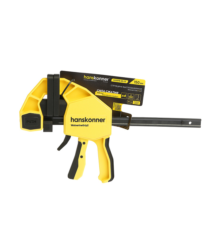 Струбцина быстрозажимная, 150мм, 300кгс, сжим-разжим, hanskonner