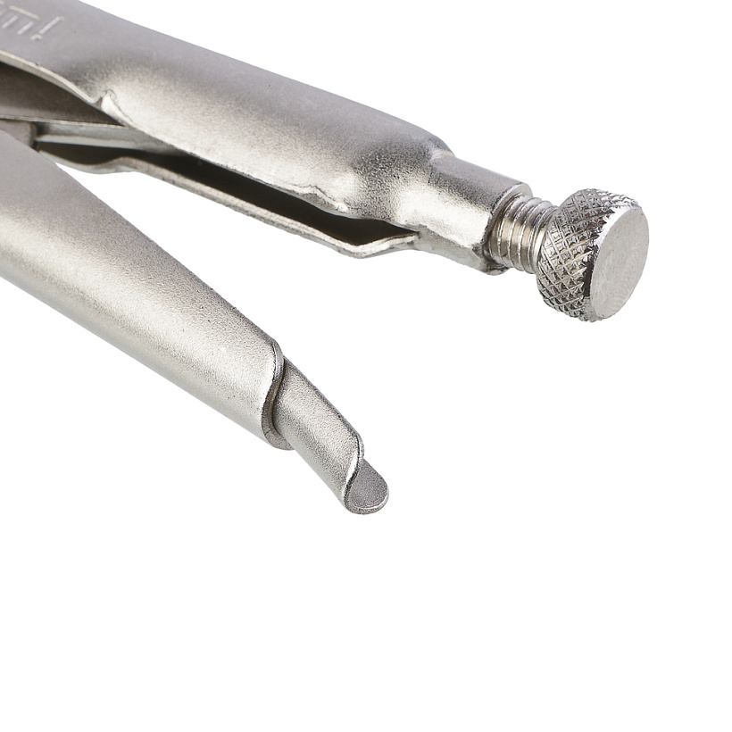 Ручной зажим с фиксатором предназначен для удержания и надежной фиксации деталей при проведении слесарно-монтажных и сварочных работ. Фиксация происходит при сжатии рукояток инструмента до упора благодаря особой конструкции блокирующего механизма.