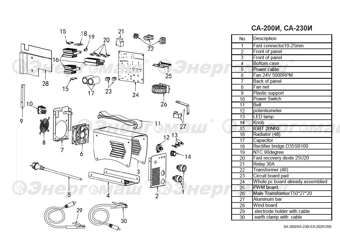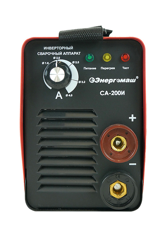 Сварочный инвертор Энергомаш СА-200И — компактный производительный аппарат с простым управлением и универсальным подключением.
