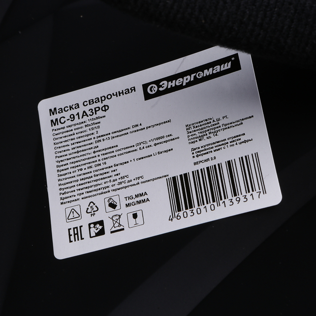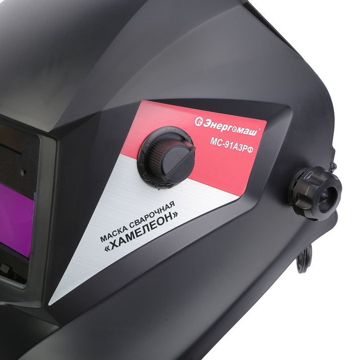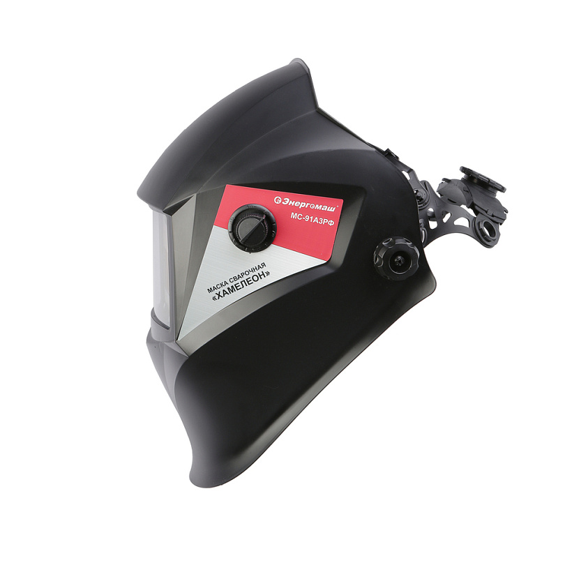 Сварочная маска Энергомаш МС-91А3РФ. Простая в использовании модель для индивидуальной защиты как от вредного инфракрасного и ультрафиолетового излучения, так и от брызг расплавленного металла.