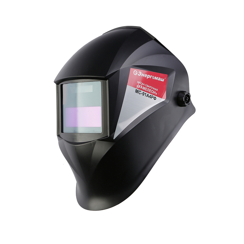 Сварочная маска Энергомаш МС-91А4РФ. Простая в использовании модель для индивидуальной защиты как от вредного инфракрасного и ультрафиолетового излучения, так и от брызг расплавленного металла.