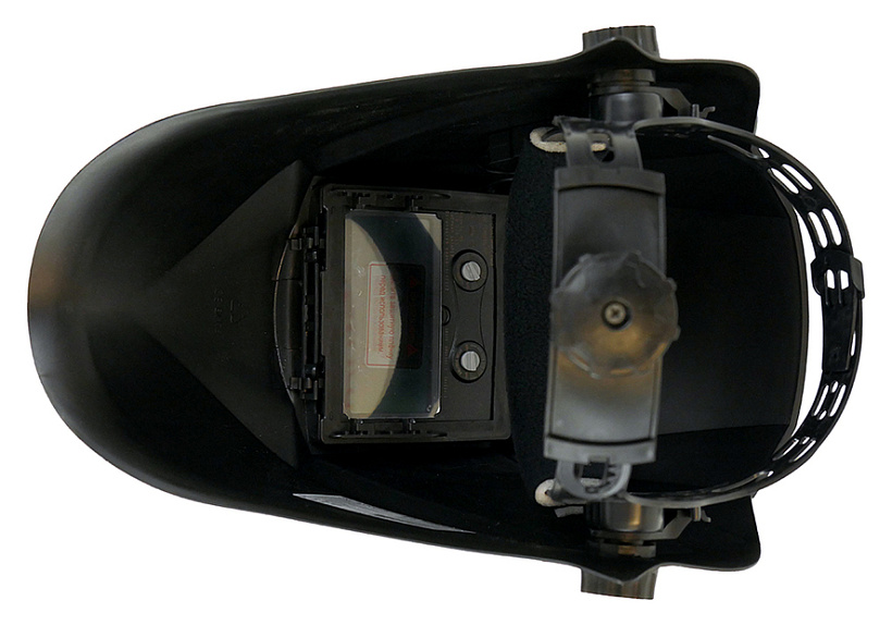 Щиток оснащен удобной крепежной 3D системой с простой настройкой под любой размер головы. Для точной подгонки наголовной ленты применен поворотный механизм с автофиксацией, а комфортное положение маски по высоте можно предварительно выставить с помощью реечного пошагового механизма. Ручка фиксации щитка для удобства имеет крупную насечку, позволяя пользователю выполнить быстрый зажим, не снимая сварочных рукавиц.