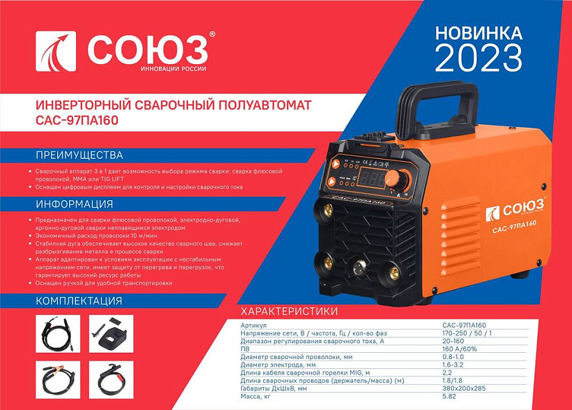 Инверторный сварочный полуавтомат СОЮЗ САС-97ПА160