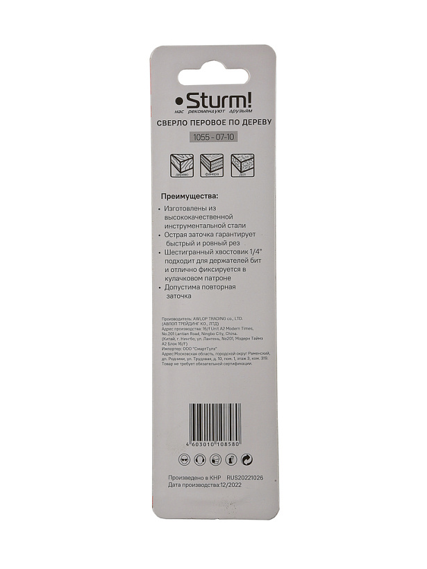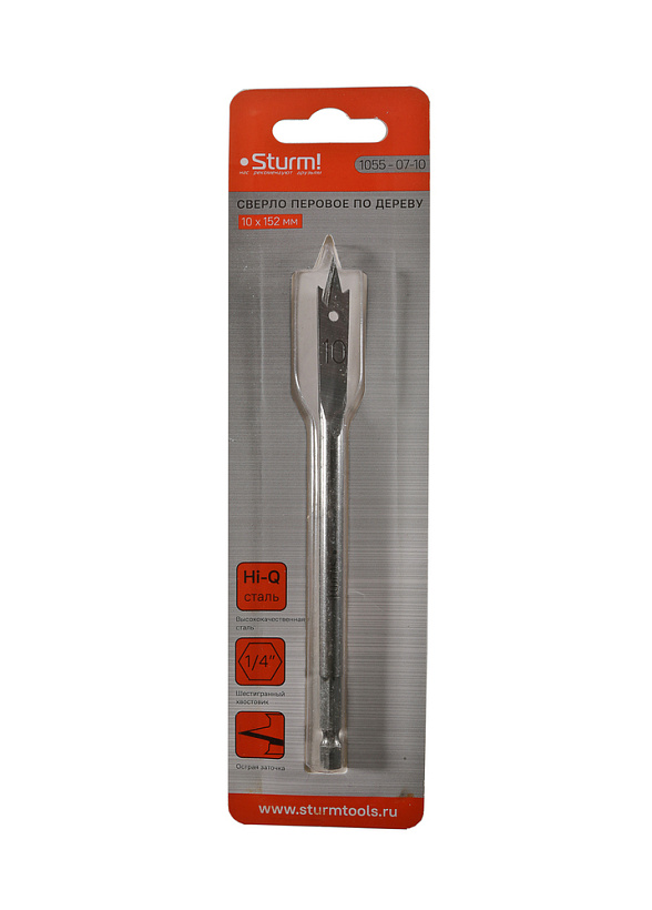 Сверло перовое по дереву, 10мм, шестигранный хвостовик, Sturm!