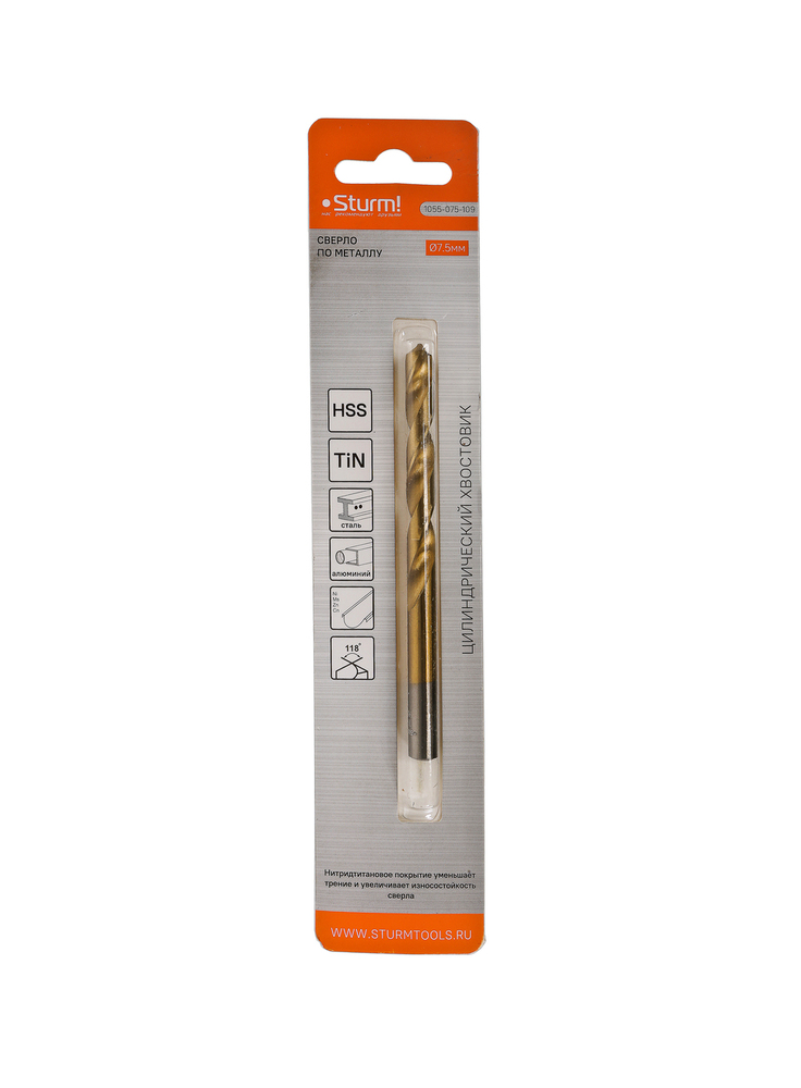 Сверло по металлу 7,5мм Энергомаш, 5 шт.
