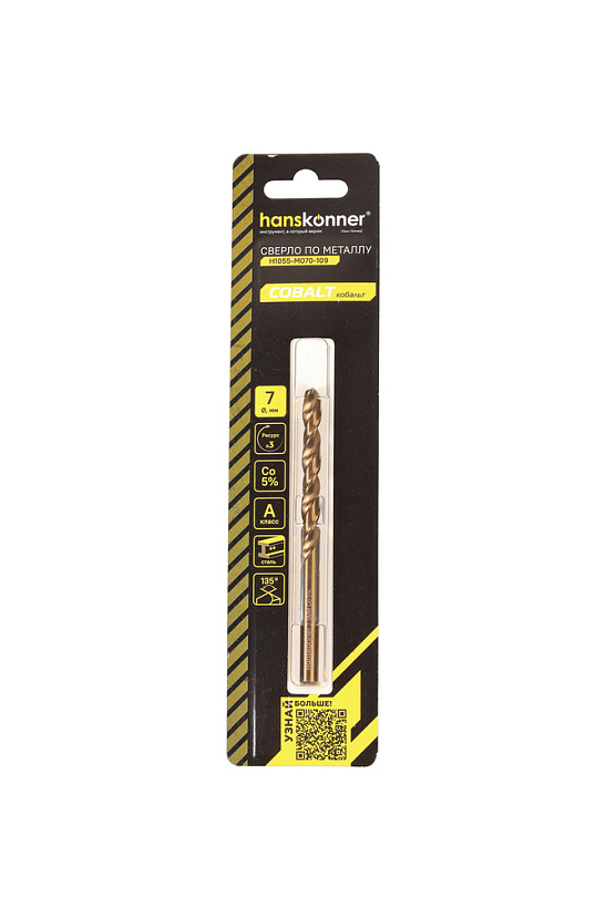 Сверло по металлу COBALT 7,0х109мм Hanskonner