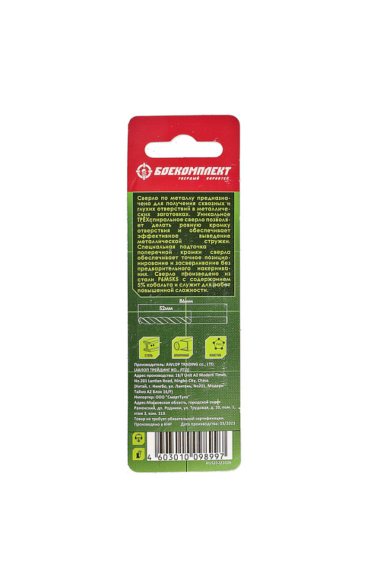 Сверло по металлу ТРЁХСПИРАЛЬНОЕ Кобальт 5,0х86мм БОЕКОМПЛЕКТ