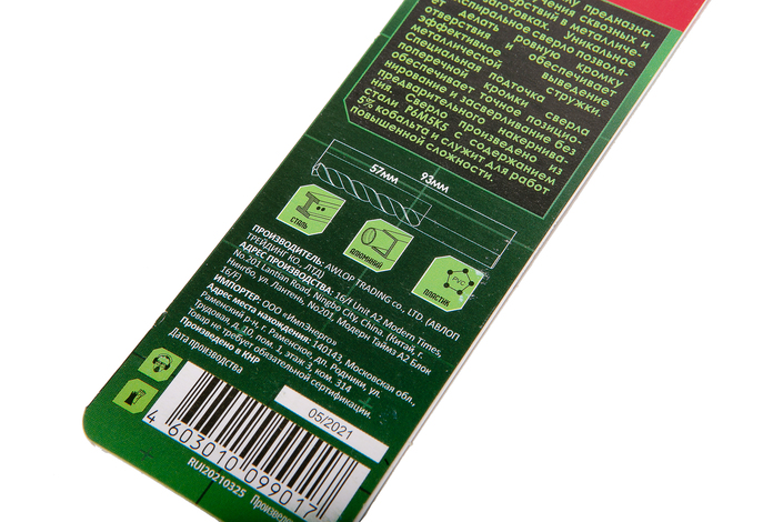 Сверло по металлу ТРЁХСПИРАЛЬНОЕ Кобальт 5,5х93мм БОЕКОМПЛЕКТ