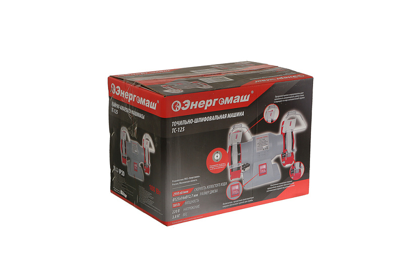 Точильный станок Энергомаш ТС-125. Производительная, легкая модель отличается хорошей заточкой и очень простым обращением.