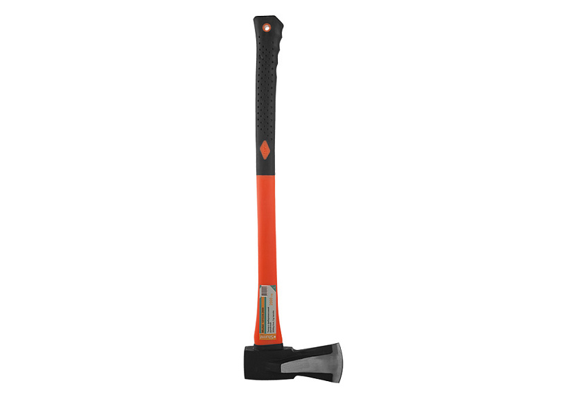 Топор изготовлен из кованой высококачественной стали, что обеспечивает сохранение формы на протяжении всего срока службы. Усиленное лезвие закалено индукционным методом и держит заточку при самых тяжёлых условиях работы. Специальные утолщения по бокам помогают эффективно колоть древесину. Обрезиненная удлинённая фиберглассовая рукоятка гасит вибрацию от удара, обеспечивает надёжный захват по всей длине, а так же максимально передаёт усилие при работе. Специальное порошковое антикоррозионное покрытие топора увеличивает срок службы инструмента.