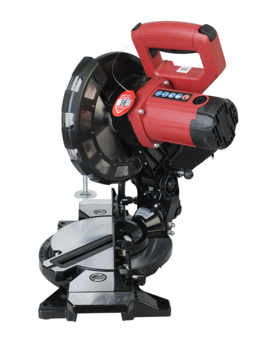 Инструмент оснащен пильным диском, винтовым зажимом для прочной фиксации заготовок и предотвращающие их опрокидывание выдвижными боковыми суппортами.