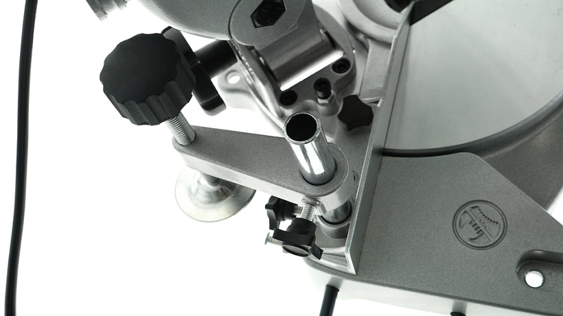 Благодаря большому поворотному столу, фиксирующемуся в любом положении, наличию удобной регулировки с прецизионными шкалами для точной настройки нужного наклона пилу можно уверенно выставить в рабочую позицию на предварительно заданные параметры косых пропилов.
