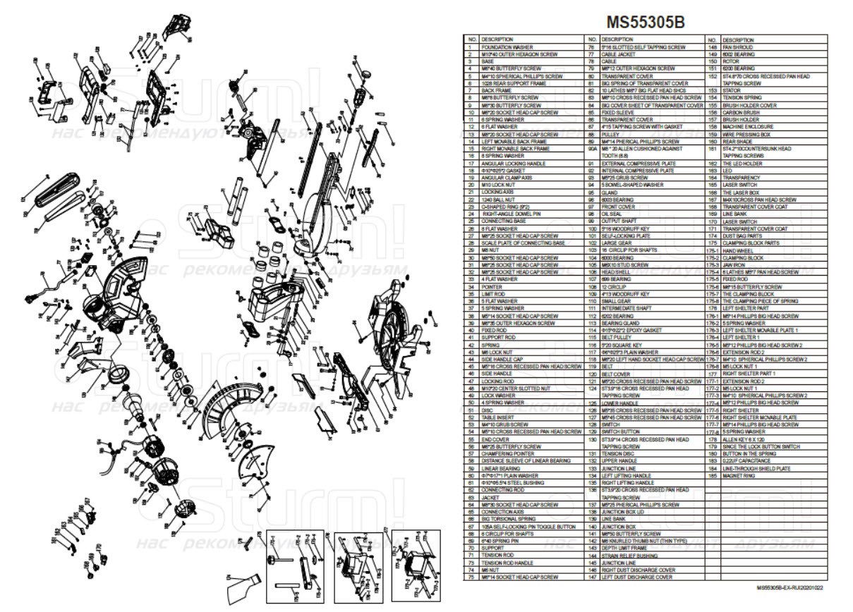 Sturm MS55305B – среднеразмерная универсальная торцовочная пила высокой точности с рабочим диаметром диска 305 мм. Модель оснащена производительным 2200 Вт электромотором и мощным редуктором, позволяющими осуществлять распил древесины на глубину до 105 мм. Имеет механизм протяжки, благодаря которому возможен распил широких заготовок и поворотный опорный стол с промежуточной фиксацией положений, для осуществления пропилов под различными углами. Также, предусмотрена функция регулировки положения пильного блока: при необходимости, пользователь может отклонять его от вертикали на угол до 45 градусов как влево, так и вправо. Важная особенность, выгодно выделяющая Sturm MS55305B среди аналогов – наличие ременного привода, обеспечивающего наименьший шум и вибрацию при работе, и предохраняющего от повреждений электромотор в случае заклинивания в материале пильного диска. Инструмент получил LED подсветку рабочей зоны, гарантирующую отличную видимость зоны резания и оснащен встроенной системой пылеудаления с возможностью установки пылесборника, либо подключения к строительному пылесосу. Удобству обслуживания способствует функция быстрого доступа к щеткам, позволяющая производить их замену без предварительного разбора элементов корпуса.