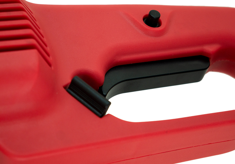 Уменьшенный корпус редуктора позволяет выполнять более глубокий рез. Безопасный включатель с кнопкой фиксации и защитой от непреднамеренного включения облегчает работу в непрерывном режиме и обеспечивает мгновенное отключение инструмента одним нажатием при необходимости.