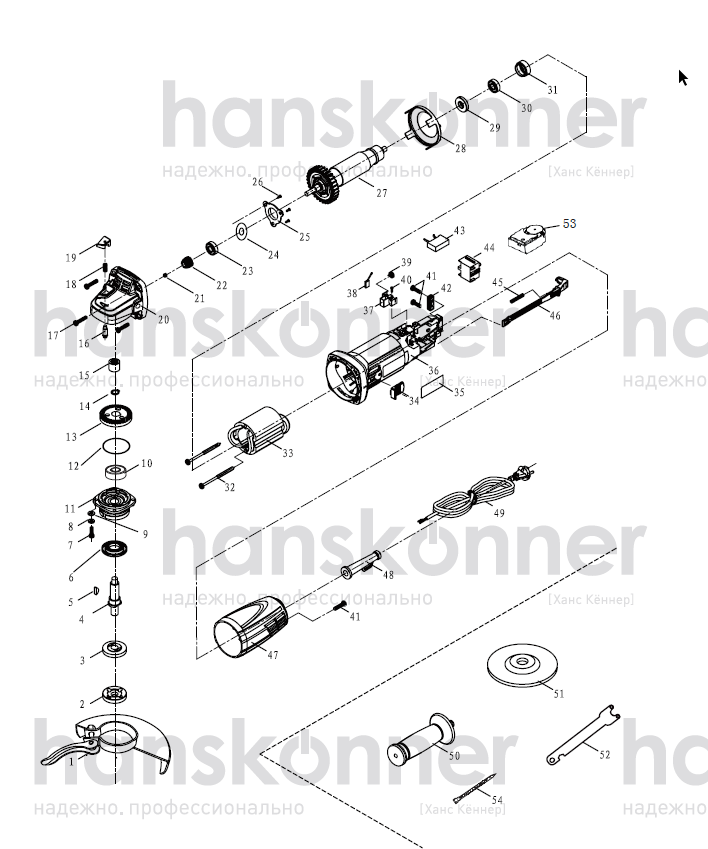 Hanskonner HAG9012TЕS – компактная универсальная болгарка (УШМ) под рабочий диаметр диска 125 мм. Обладает оптимальными массово-габаритными показателями и выверенными пропорциями: малый диаметр корпуса гарантирует максимальное удобство хвата, нейтральный центр тяжести позволяет уверенно контролировать инструмент в процессе работы даже одной рукой, низкопрофильный корпус редуктора клиновидной формы облегчает работу в местах с трудным доступом. Главная особенность модели – наличие блока константной электроники EPM (Electronic Power Manager), который обеспечивает поддержание стабильной частоты вращения на валу шпинделя, препятствуя падению оборотов под нагрузкой. Применение данной опции позволяет повысить производительность работы в среднем на 20%. К числу достоинств Hanskonner HAG9012TЕS стоит отнести и систему плавного пуска – она снижает пусковые нагрузки на двигатель и предотвращает рывок инструмента в момент включения, а также электронную регулировку оборотов (4000 – 10000 об / мин), благодаря которой достигается оптимальный подбор частоты вращения в зависимости от типа используемой оснастки и обрабатываемого материала .Инструмент оснащен мощным 1100 Вт электромотором со специальным термостойким покрытием и дополнительной защитой от пыли и абразивных частиц, усиленным редуктором с шестернями, подверженными закалке, а также, фирменными пылезащищенными подшипниками C&U – все это обеспечивает достаточный запас по надежности. Сетевой кабель имеет резиновую изоляцию, что позволяет сохранить его гибкость и эластичность в условиях низких температур, а четырехметровая длина кабеля обеспечивает рабочую зону площадью до 50 квадратных метров, исключая необходимость задействовать дополнительный сетевой удлинитель. Модель проста в эксплуатации и обслуживании. Снабжена быстросъемным защитным кожухом, надежно фиксирующимся при помощи специального зажимного рычага, за счет чего возможна быстрая смена положения кожуха без помощи вспомогательного инструмента, а также удобной патентованной рукоятью со специальным твердосплавным карандашом для нанесения разметки на поверхности любой сложности, включая ржавые, влажные и маслянистые. Комплектуется штатным пластмассовым кейсом для удобства хранения и транспортировки.