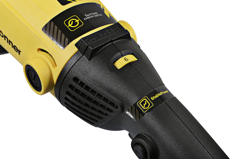 Hanskonner HAG15150EC – мощная универсальная болгарка (УШМ) под рабочий диаметр диска 150 мм. Имеет компоновку с длинной рукоятью, производительный 1500 Вт электромотор StoneCut и мощную механическую часть – способна выполнять любые задачи по резке, зачистке, шлифованию поверхностей из металла, керамической плитки, кирпича и камня. Выверенные массово-габаритные показатели, а также нейтральный центр тяжести гарантируют лучший контроль инструмента, а клиновидный корпус редуктора NarrowBody значительно облегчает рабочий процесс в условиях с трудным доступом. Главная особенность модели, выделяющая ее среди аналогов – наличие блока константной электроники EPM (Electronic Power Manager), задача которого поддерживать оптимальную частоту вращения на валу шпинделя, препятствуя падению оборотов под нагрузкой. Применение данной опции в среднем повышает производительность работы на 15%. Кроме того, блок EPM обеспечивает плавный запуск инструмента, исключая стартовый рывок, а также позволяет в широком диапазоне (2400 – 8400 об/ мин) производить регулировку оборотов вала шпинделя в зависимости от типа используемой оснастки и обрабатываемого материала. Модель имеет повышенные надежность и ресурс, как за счет применения качественных комплектующих (фирменные подшипники C&U), так и за счет продуманной, с запасом прочности, конструкции: электромотор покрыт несколькими изоляционными слоями термостойкого лака и бронирован от пыли и абразивных частиц, благодаря закалке, повышенной износостойкостью обладают конические шестерни редуктора, корпус инструмента изготовлен с использованием нейлона, что способствует его долговечности. Также, инструмент получил функцию автоматического отключения щеток AutoStopBrush, защищающую коллектор от повреждений при критическом уровне щеточного износа. Модель проста в эксплуатации и обслуживании. Снабжена быстросъемным защитным кожухом FastAdapt, надежно фиксирующимся при помощи специального зажимного рычага, а также удобной обрезиненной патентованной рукоятью. Предусмотрена функция быстрого доступа к щеткам QuickChange, обеспечивающая возможность их быстрой замены, без демонтажа элементов корпуса. Благодаря применению сетевого кабеля VelcroRubber4 с резиновой изоляцией, удалось в полной мере сохранить его гибкость и эластичность в условиях низких температур. Четырехметровая длина кабеля способна обеспечить рабочую зону площадью до 50 квадратных метров без необходимости применения дополнительного сетевого удлинителя.