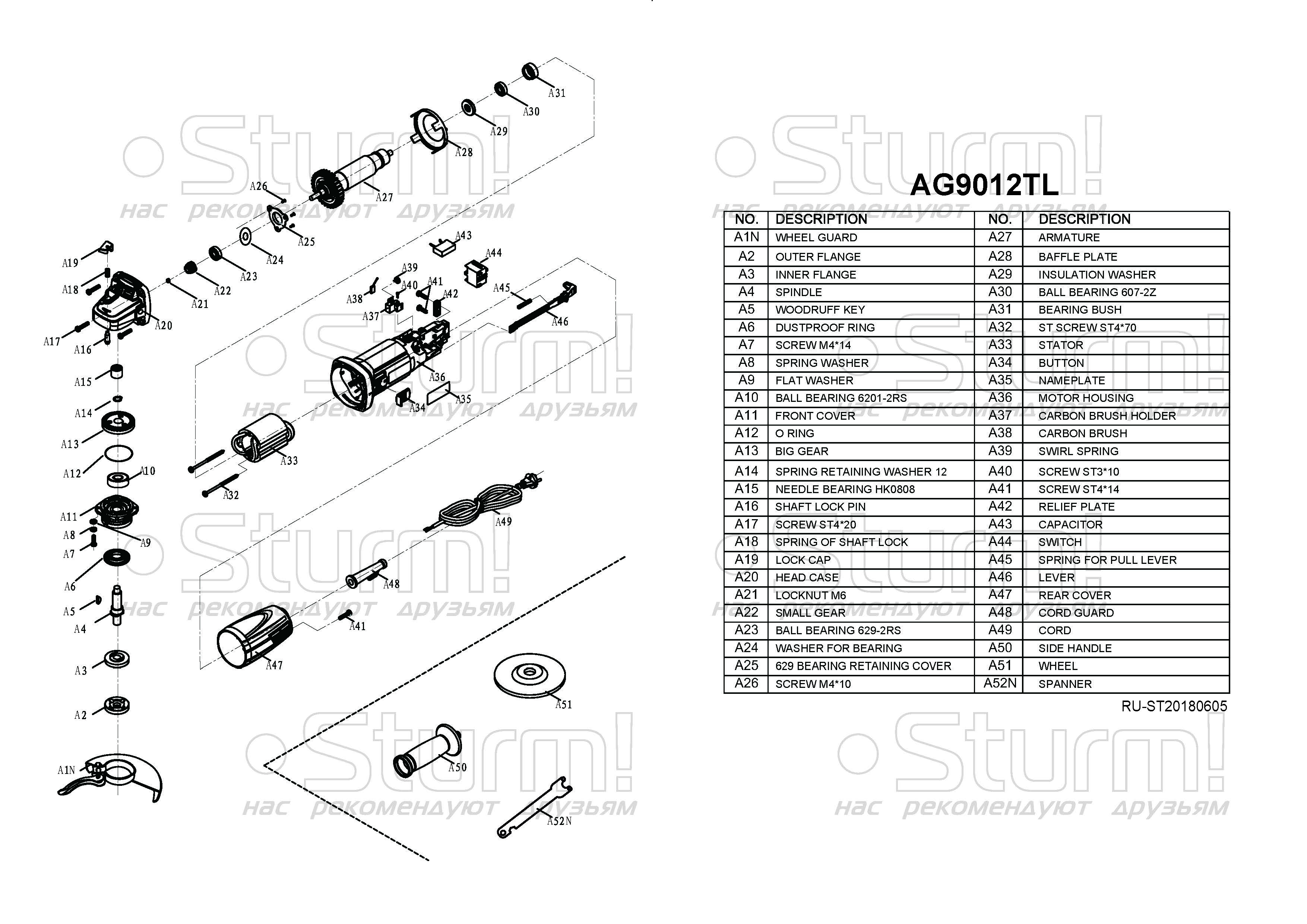 Гайки для крепления диска, комплект щеток, дополнительная рукоятка, ключ, защитный кожух в комплекте.