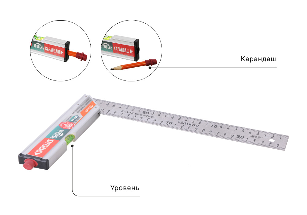 Угольник обладает прочностью и долговечностью, так как полотно изготовлено из закаленной нержавеющей стали, а рукоятка из алюминия.