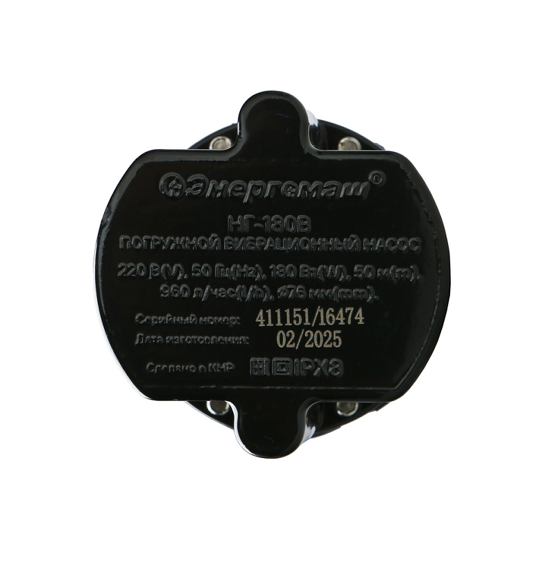 Насос вибрационный погружной Энергомаш НГ-180В с верхним забором воды предназначен для забора чистой воды из скважин диаметром от 82 мм и колодцев, а также из различных водоемов и емкостей.