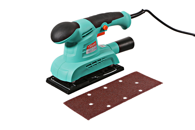 * Вибрационная шлифмашина; * Пластмассовый переходник для подключения к пылесосу; * Шлифовальная бумага; * Упаковка.