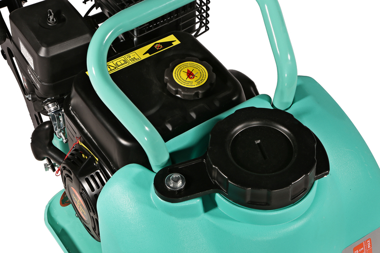 В конструкцию виброплиты вмонтирована система подачи воды на трамбовочную плиту для работ по асфальту с вместительным баком на 13 литров.