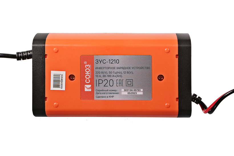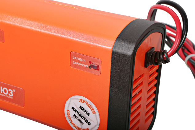 СОЮЗ ЗУС-1210 — портативное инверторное зарядное устройство. Предназначено для автоматической зарядки как классических свинцово-кислотных, так и AGM (технология Absorbent Glass Mat), а также гелевых (GEL) аккумуляторных батарей напряжением 12 В и емкостью от 30 до 100 Ач. Модель выполнена в компактном корпусе — благодаря своим минимальным габаритам очень удобна в хранении и транспортировке. Устройство предельно простое в эксплуатации и не требует специальных навыков — пользователю достаточно лишь подключить провода с зажимными клеммами к аккумулятору, соблюдая полярность, и включить прибор в сеть. Контролировать процесс зарядки помогает световая индикация: красный цвет индикатора — аккумулятор заряжается, зеленый цвет индикатора — аккумулятор уже заряжен. Ток зарядки СОЮЗ ЗУС-1210 составляет 10 А. Для обеспечения безопасности пользователя в случае любых внештатных ситуаций модель оснащена необходимым комплексом защиты: от перегрева, от короткого замыкания, от неверной полярности подключения.